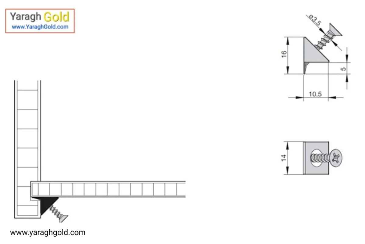 اتصال پشت کار برای ثابت نگه داشتن و خارج نشدن ورق 3 میل از شیاری که درون آن قرار دارد طراحی گردیده است یکطرف آن درون شیار وارد میشود و طرف دیگر با پیچ به بدنه بسته میشود